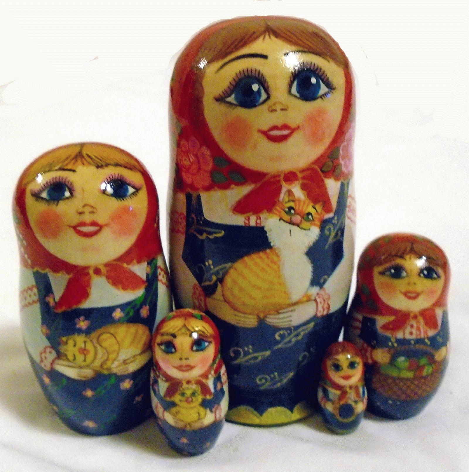 Geleneksel tasarım kızlar matryoshka, ahşap iç içe bebek Rusya'da el yapımı. Yüksekliği 17 cm. 5 adet kümesi.